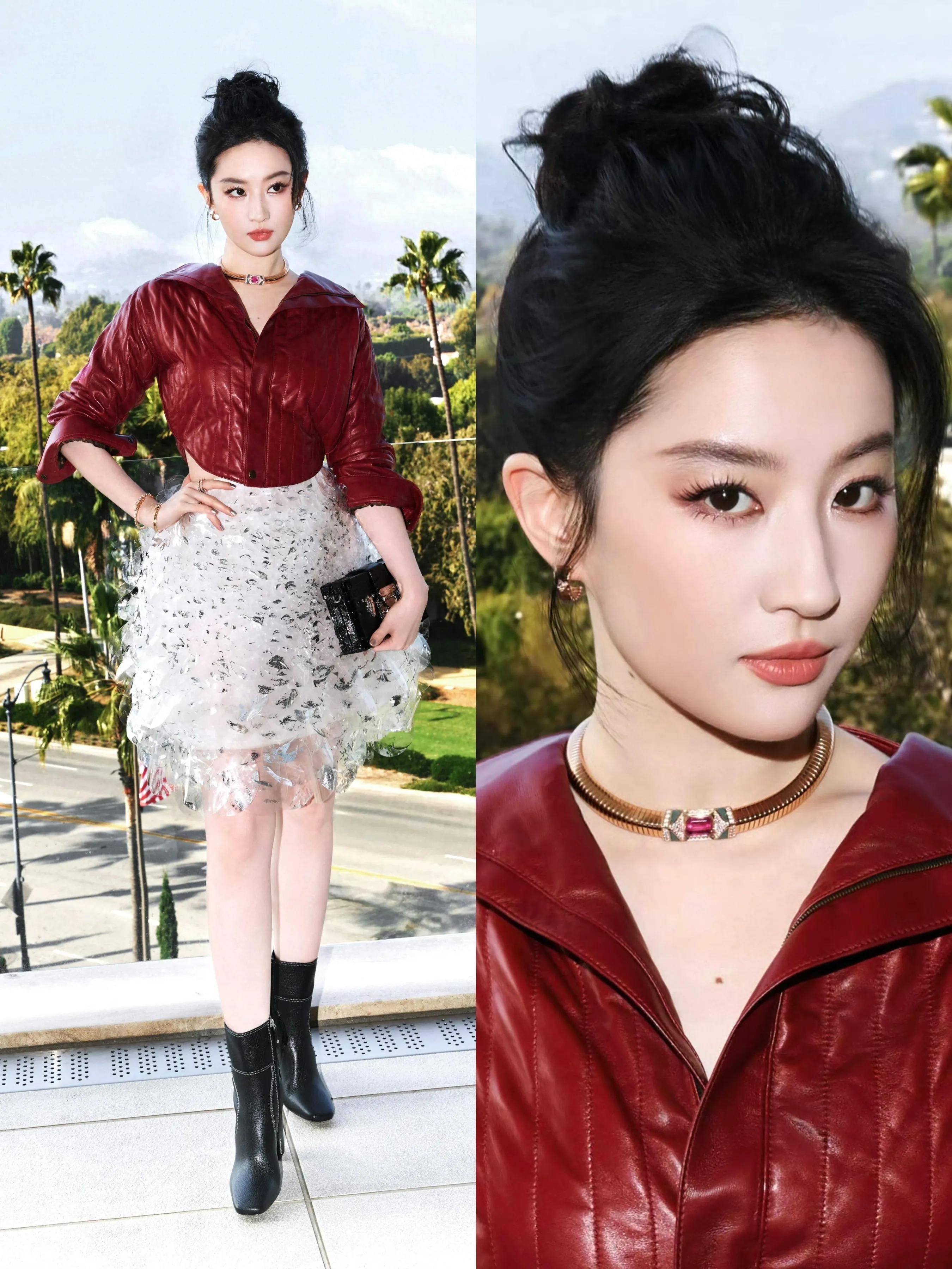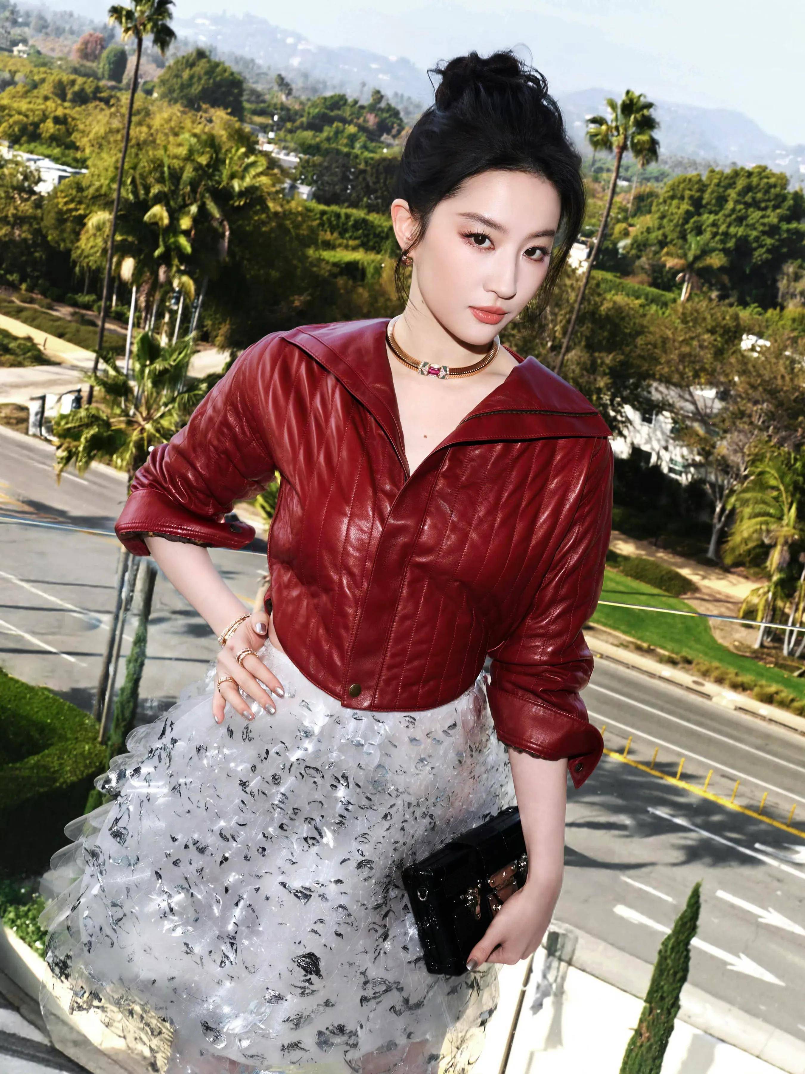近日,刘亦菲现身洛杉矶好莱坞电影主题活动的一组照片在网络上引发热议。曾几何时,她在国内时尚活动中一袭优雅长裙搭配满天星头饰的造型惊艳全网,被网友盛赞“九天仙女下凡”,连十块钱一束的满天星都被造型师打造成了高定珠宝既视感。可短短几天,她在洛杉矶的亮相却画风突变,枣红色短款皮衣搭配缀花长裙,被调侃“大牌秒变地摊货”,着实让人跌破眼镜。